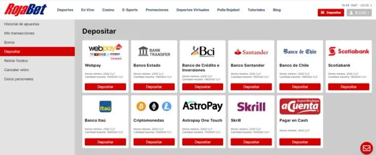 No son pocos los jugadores que presentan dudas a la hora de realizar sus depósitos para participar en un sitio de Juego En Línea. Por eso, hoy queremos compartir contigo información importante, relacionada a cómo depositar dinero en Rojabet, una de las plataformas líderes en las Apuestas y Casino Online de Chile. Descubre los métodos de pago, las instrucciones paso a paso y las consideraciones generales. ¡Rojabet es perfecto para ti!