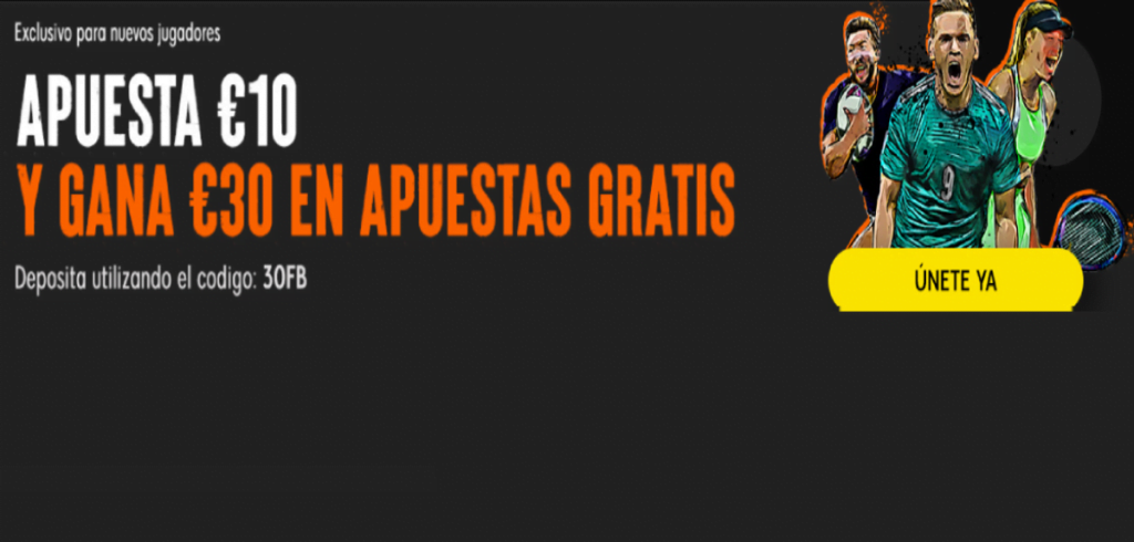 En 888sport ganas desde el mismo momento en que creas tu cuenta. ¿Cómo? Con el bono de bienvenida y tu primer depósito conseguirás hasta $30 gratis para apostar en tus eventos deportivos favoritos. Para activar el beneficio, debes colocar el código: «FB30» al momento de efectuar el primer depósito de dinero real en el sitio, que debe ser como mínimo de $10. Recuerda que se trata de un bono exclusivo para nuevos usuarios en Chile.